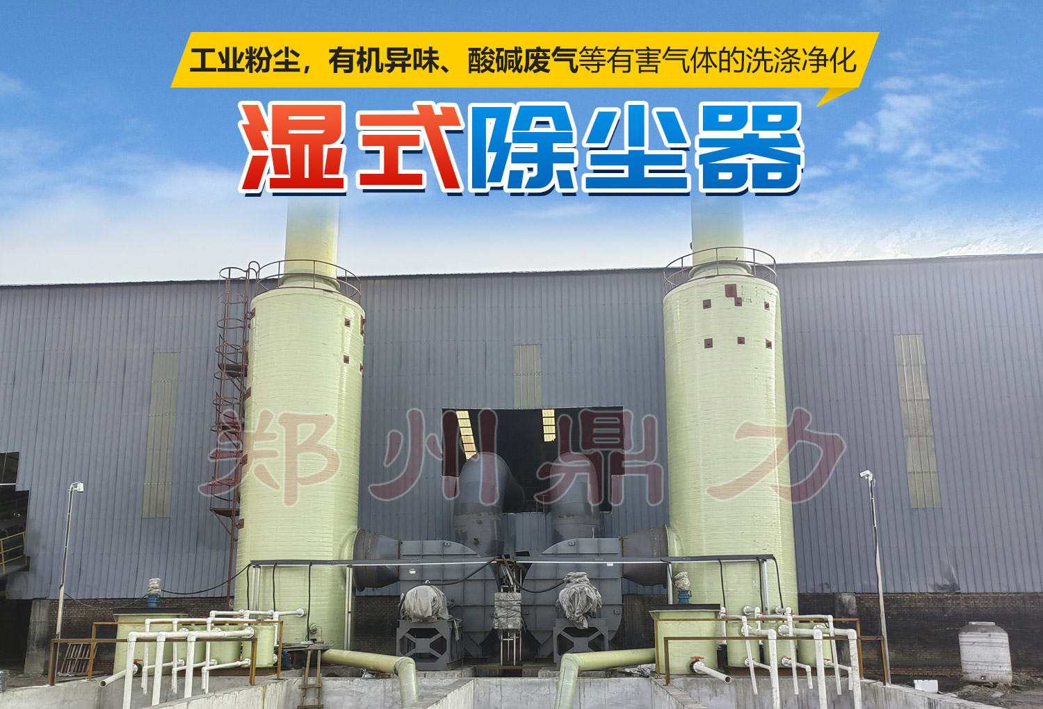 鼎力濕式除塵器是在吸收各種濕式除塵器優(yōu)點(diǎn)的基礎(chǔ)上新研制開發(fā)的一種新型除塵器,螺旋型空心錐形噴嘴和除霧分離器,包括塔體、進(jìn)風(fēng)口、出風(fēng)口、旋流霧化噴淋裝置、除霧分離器、循環(huán)水池、循環(huán)泵。根據(jù)除塵介質(zhì)要求采用增減霧化器和旋流裝置的層數(shù)、葉片數(shù)量及升降旋流板角度、密度和覆蓋率高低可調(diào),利用供水裝置來(lái)調(diào)整阻力損失的大小,從而實(shí)現(xiàn)了霧化、離心、旋流、重力沉降和水膜于一體,用最低的成本,最簡(jiǎn)化的方法完成空氣凈化。