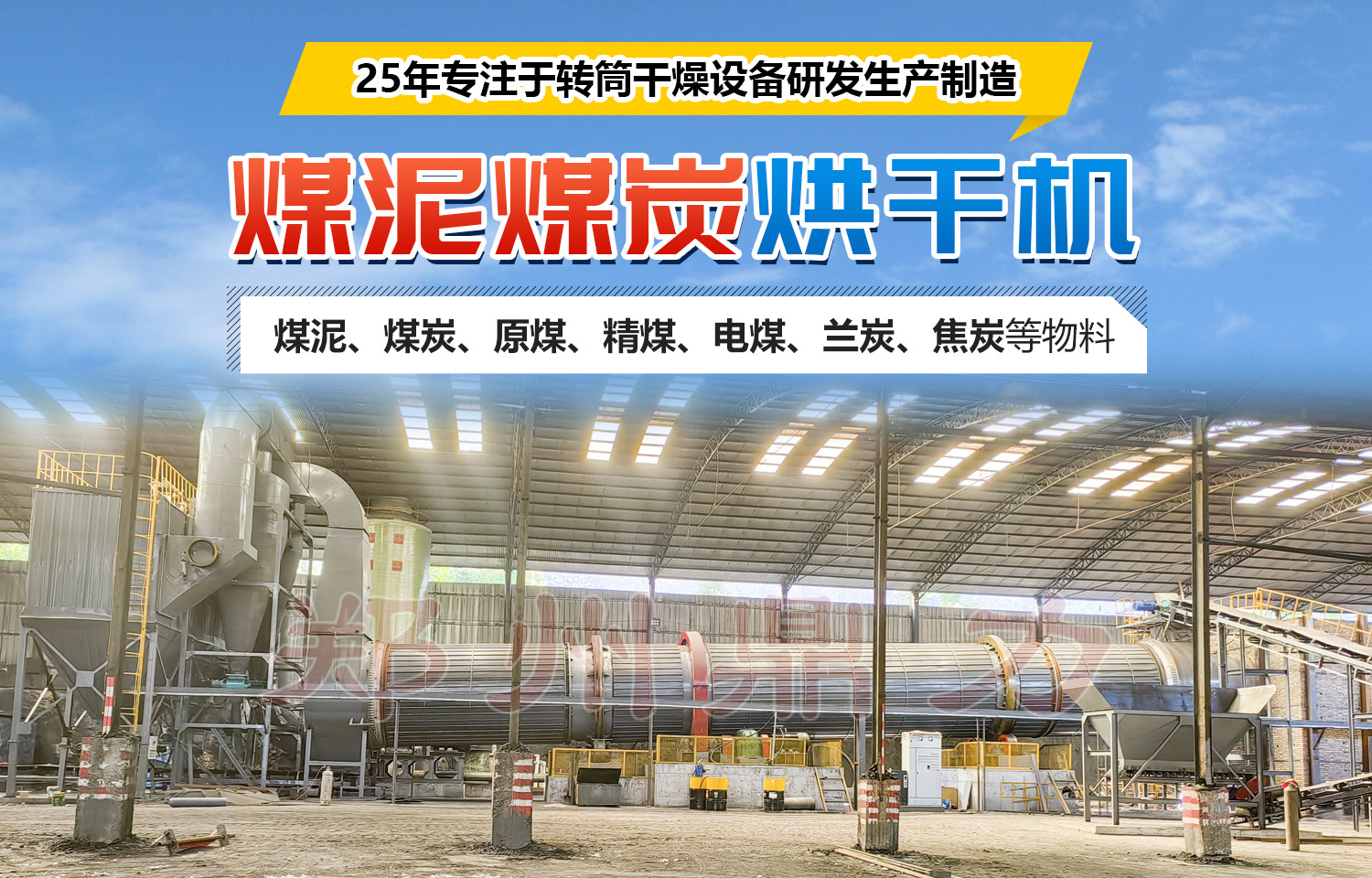 鼎力煤泥烘干機主要由熱源、喂料裝置、帶式上料機、回轉(zhuǎn)滾筒、帶式出料機、引風(fēng)機、除塵器和配電柜構(gòu)成。該套設(shè)備工作原理如下:物料由于具有一定的粘性,濕物料進入干燥滾筒后分以下幾個工作區(qū):一是導(dǎo)料區(qū),濕物料泥進入此區(qū)與高溫?zé)犸L(fēng)接觸迅速蒸發(fā)水分,物料在大導(dǎo)角的導(dǎo)料板抄動下,形不成粘結(jié)便被導(dǎo)入下一個工作區(qū);二是抄起清理區(qū),濕料在此區(qū)被抄板抄起形成料幕狀態(tài),物料落下時易形成粘結(jié)滾筒壁現(xiàn)象,在此區(qū)由于設(shè)備設(shè)計有清掃裝置,清掃裝置便十分合理地清掃了內(nèi)壁粘附的物料,在這個過程中,清掃裝置對于物料團球結(jié)塊也起破碎作用,從而增加了熱交換面積,提高了干燥速率;三是傾斜揚料板區(qū),濕煤泥在此區(qū)已 呈低水分松散狀態(tài),物料在此區(qū)已不具有粘結(jié)現(xiàn)象,經(jīng)過充分熱交換后物料達到所要求的水分狀態(tài),進入出料區(qū);四是出料區(qū),滾筒在此區(qū)不設(shè)抄板,物料在此區(qū)滾動滑行至排料口,完成整個烘干過程。