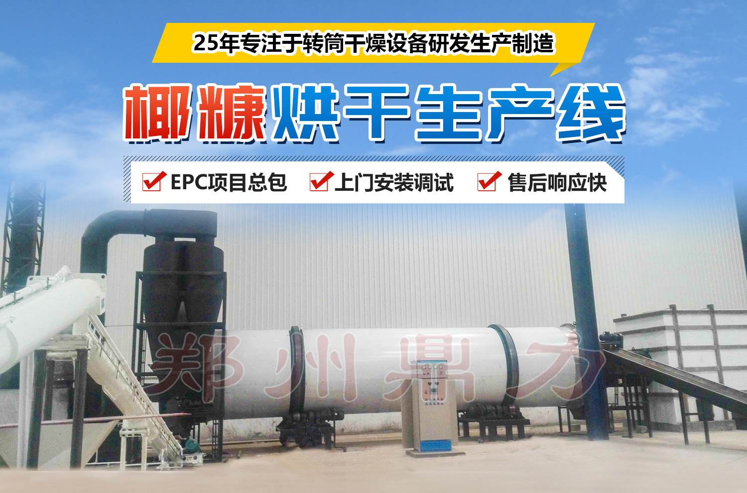 椰糠原料由于摩擦系數(shù)大,容易堵塞,我們采用風力輸送系統(tǒng)將其送入三層回轉(zhuǎn)干燥滾筒內(nèi)層,內(nèi)層滾筒分三個工作區(qū):一 是導料區(qū),濕物料進入此區(qū)與高溫熱風接觸迅速蒸發(fā)水分,物料在大導角的導料板抄動下,形不成粘結(jié)便被導入下一個工作區(qū);二是抄起清理區(qū),濕物料在此區(qū)被不同角度的抄板抄起形成全斷面料幕狀態(tài),散落呈螺旋行進式實現(xiàn)熱交換,物料落下時易形成粘結(jié)滾筒壁現(xiàn)象,在此區(qū)由于設備設計有清掃裝置,清掃裝置隨著滾筒轉(zhuǎn)動自動清掃了內(nèi)壁粘附的物料; 三是快速中轉(zhuǎn)區(qū),濕物料在此區(qū)已呈低水分松散狀態(tài),物料在此區(qū)已不具有粘結(jié)現(xiàn)象,并隨著滾筒轉(zhuǎn)動快速流入中層滾筒。
