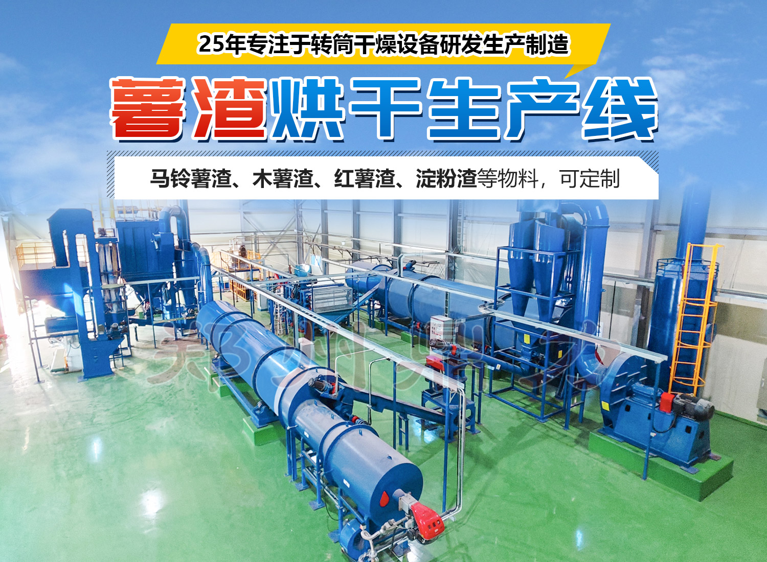 薯渣烘干機(jī)流程是:水分80-85%物料先經(jīng)過專用脫水機(jī),水分脫除到68%左右,由螺旋輸送機(jī)送入攪拌滾筒烘干機(jī)實(shí)現(xiàn)順流烘干,薯渣在抄板下不斷抄起、散落呈螺旋行進(jìn)式前進(jìn),內(nèi)置攪拌槳葉裝置將物料充分?jǐn)嚢璐蛏⑵扑�,充分�(jǐn)U大物料與熱氣熱交換面積,物料與熱氣充分質(zhì)熱交換,水分迅速蒸發(fā)汽化,達(dá)到35%左右,完成滾筒干燥過程,由螺旋輸送機(jī)排出,進(jìn)入半濕物料專用粉碎機(jī),粉碎物料粒度到1mm以下,進(jìn)入脈沖氣流烘干過程,物料迅速降到12%以下。(可避免物料在烘干過程中糊化、糖化現(xiàn)象發(fā)生,造成物料外觀顏色發(fā)黑),由旋風(fēng)卸料器和脈沖袋式收塵器回收干料粉,廢氣達(dá)標(biāo)排放,完成整個(gè)烘干過程。滾筒內(nèi)部安裝有震打清理裝置,防止物料與筒壁粘接。