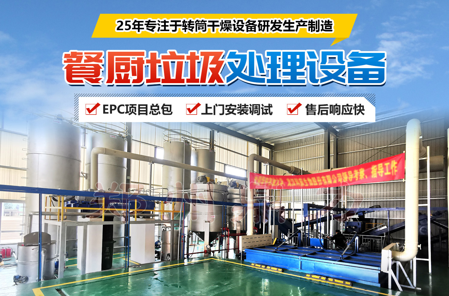 (六)餐廚垃圾干化系統(tǒng): 餐廚垃圾在高溫干燥的過(guò)程中滅活物料中的有害微生物,不需要單獨(dú)設(shè)立滅菌工藝,簡(jiǎn)化了物料處理的過(guò)程,節(jié)省了單獨(dú)滅菌所需的能量,干燥滅菌后將物料烘干到需求水分。