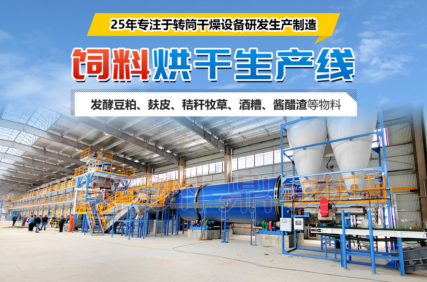 飼料烘干機主 要由供熱源、上料機、進料機、回轉(zhuǎn)滾筒、出料機、引風(fēng)機、卸料器和配電柜構(gòu)成;脫水后的濕物料加入干燥機后,在滾筒內(nèi)均布的抄板器翻動下,物料在干燥機內(nèi) 均勻分散與熱空氣充分接觸,加快了干燥傳熱﹑傳質(zhì)。在干燥過程中,物料在帶有傾斜度的抄板和熱氣質(zhì)的作用下,至干燥機另一段星形卸料閥排出成品。