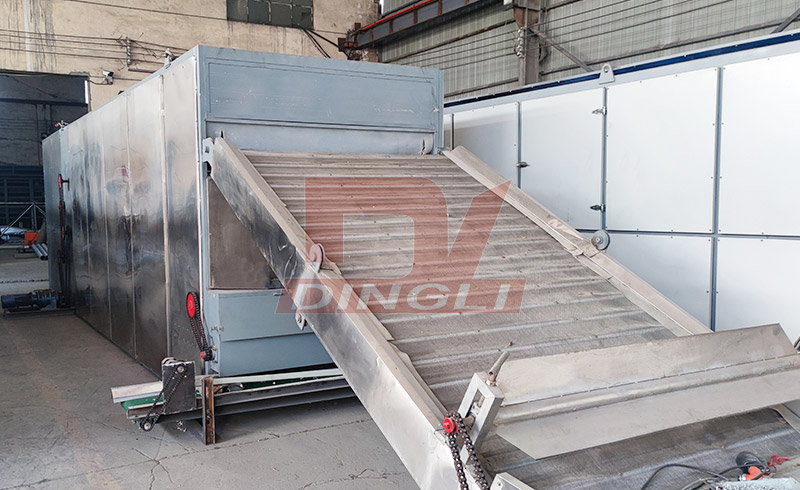 物料經(jīng)給料機均勻地放置在網(wǎng)帶上。網(wǎng)帶一般采用12-60目不銹鋼絲網(wǎng),通過傳動裝置在干燥機內(nèi)牽引移動。干燥器由幾個單元組成。對于每個機組,熱空氣單獨循環(huán)。一些排出的氣體用專門的除濕鼓風(fēng)機排出。廢氣通過調(diào)節(jié)閥進行控制。熱空氣從上到下或從下到上穿過覆蓋有材料的網(wǎng)帶,這將完成傳熱和傳質(zhì)過程。這個過程會帶走材料中的水分。網(wǎng)帶移動緩慢,運行速度可根據(jù)物料溫度自由調(diào)節(jié)。干燥后的最終產(chǎn)品將連續(xù)落入物料收集器中。上下循環(huán)機組可根據(jù)用戶需求自由配置。單元編號可以根據(jù)需求進行選擇。