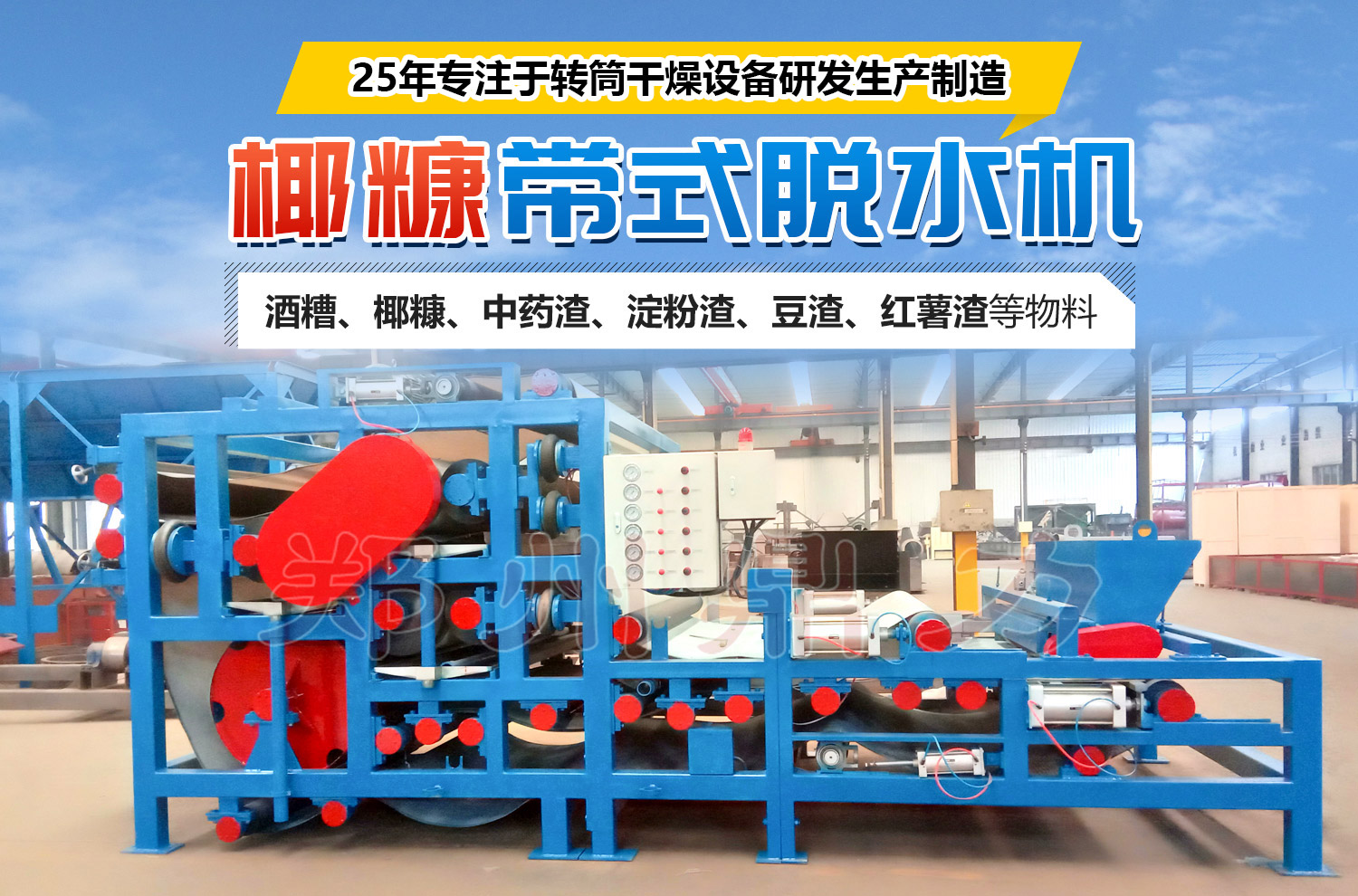 物料經(jīng)過(guò)輸送機(jī),輸送到脫水機(jī)的料斗中,經(jīng)過(guò)螺旋布料器均勻地鋪在濾帶上,濾帶隨著設(shè)備的運(yùn)行,限料板把料層高度刮平,使料的厚度完全均勻一致;然后上下兩條完全漲緊的環(huán)狀濾帶夾住料層,在驅(qū)動(dòng)輥帶動(dòng)下,脫水區(qū)內(nèi)的對(duì)輥連續(xù)多次機(jī)械擠壓,將大量的水份壓出。根據(jù)物料的特點(diǎn)自動(dòng)調(diào)節(jié)擠壓力,滿(mǎn)足客戶(hù)對(duì)物料水分要求。